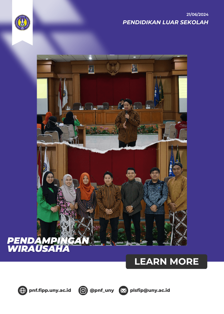 Yogyakarta, 20 Juni 2024 – Fakultas Ilmu Pendidikan dan Psikologi (FIPP) Universitas Negeri Yogyakarta (UNY mengadakan workshop pendampingan wirausaha bagi mahasiswa, dengan menghadirkan Yudan sebagai salah satu narasumber utama. Acara yang berlangsung pada hari Kamis ini dirancang dalam rangka menstimulus jiwa kewirausahaan mahasiswa serta mewujudkan mahasiswa menjadi seorang entrepreneur yang kreatif dan inovatif dalam menciptakan sesuatu untuk meningkatkan taraf hidup masyarakat