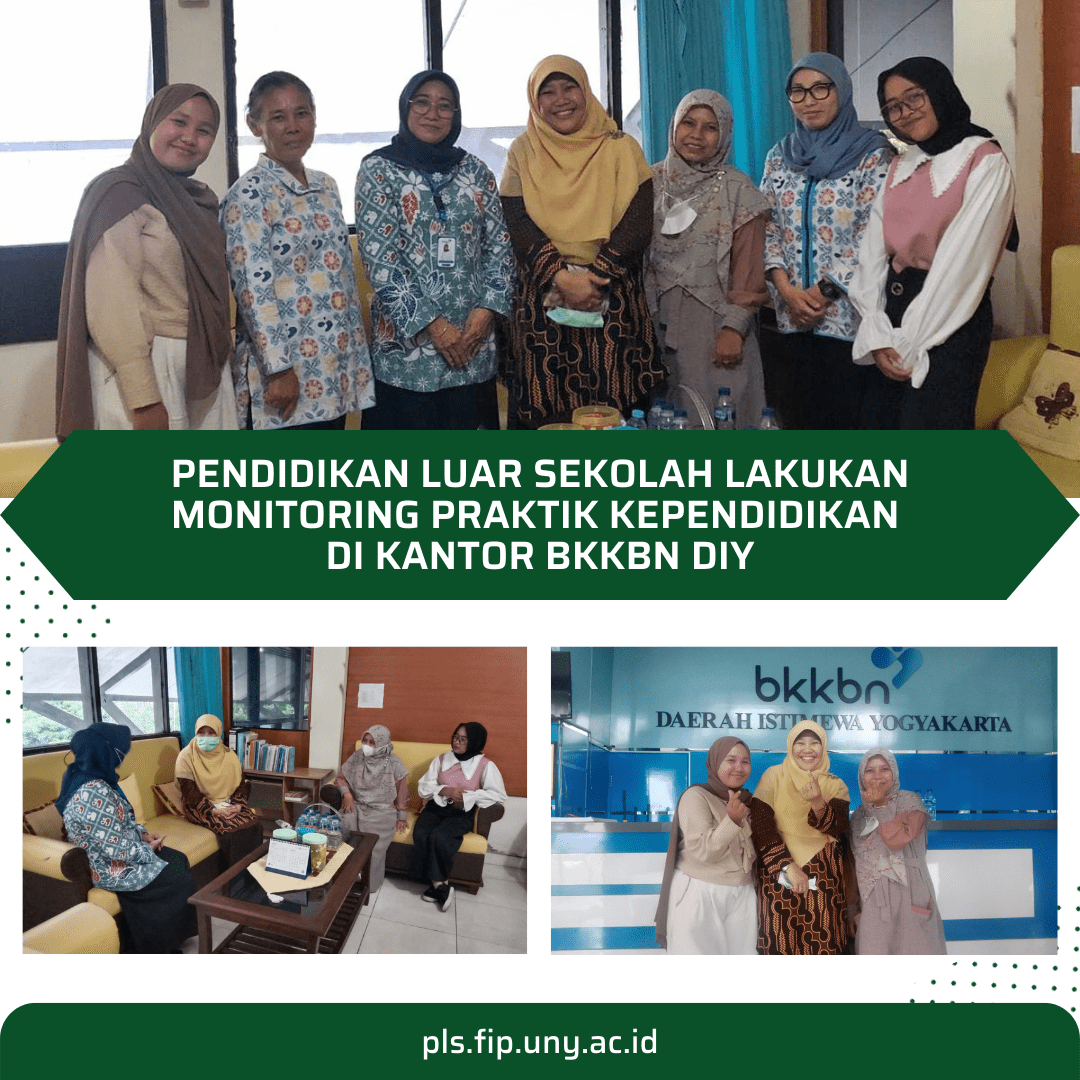 Telah dilaksanakan kegiatan monitoring Praktik Kependidikan (PK) di Kantor Perwakilan Badan Kependudukan dan Keluarga Berencana Nasional Daerah Istimewa Yogyakarta (BKKBN DIY). Kegiatan monitoring Prodi Pendidikan Luar Sekolah diwakilkan oleh Ibu Dr. Puji Yanti Fauziah, M.Pd dan Ibu Tristanti S.Pd., M.Pd. Selasa, (20/09/2022)