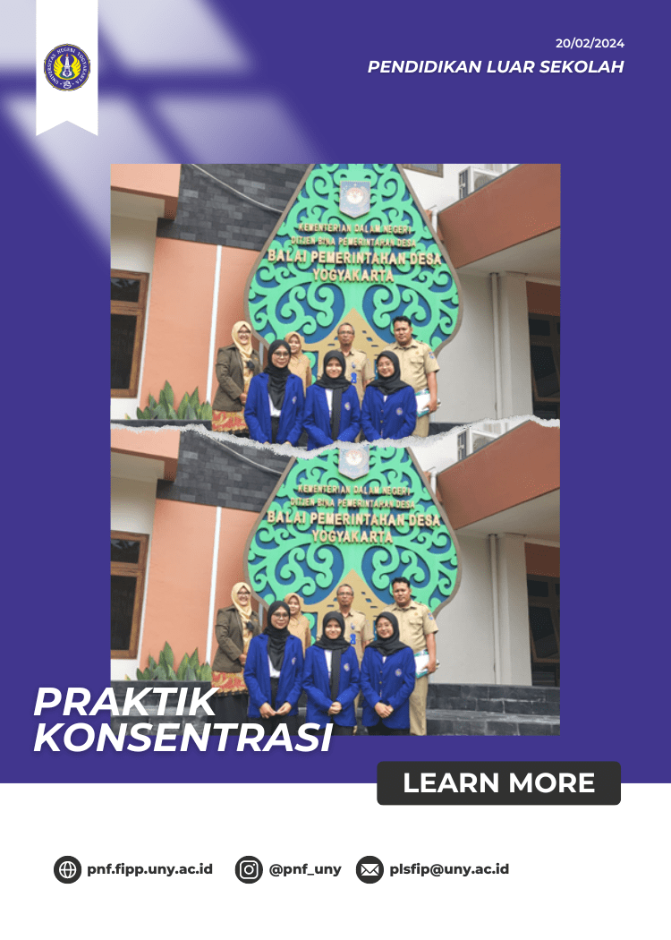 Departemen Pendidikan Luar Sekolah Fakultas Ilmu Pendidikan dan Psikologi Universitas Negeri Yogyakarta menyelenggarakan penerjunan paktik jurusan bagi mahasiawa semester enam. Kegiatan ini dilaksankan pada hari Selasa, 20 Februari 2024 yang bertempat di Balai Pemerintahan Desa Kementrian dalam Negeri Yogyakarta. Kegiatan yang dilaksanakan berupa koordinasi antara DPL dan lembaga terkait mekanisme pelaksanaan magang serta penyerahan mahasiswa kepada pihak lembaga. Penerjunan praktik jurusan dihadiri oleh Ibu Adin Ariyanti Dewi, S.Pd, M.Pd. selaku Dosen Pembimbing Lapangan, pihak lembaga Pemdes/PMD Kemendagri, dan kelompok mahasiswa prakjur yang terdiri dari Isnaini Juliatista, Hajar Muti’ah, dan Lailinda Arnetha.