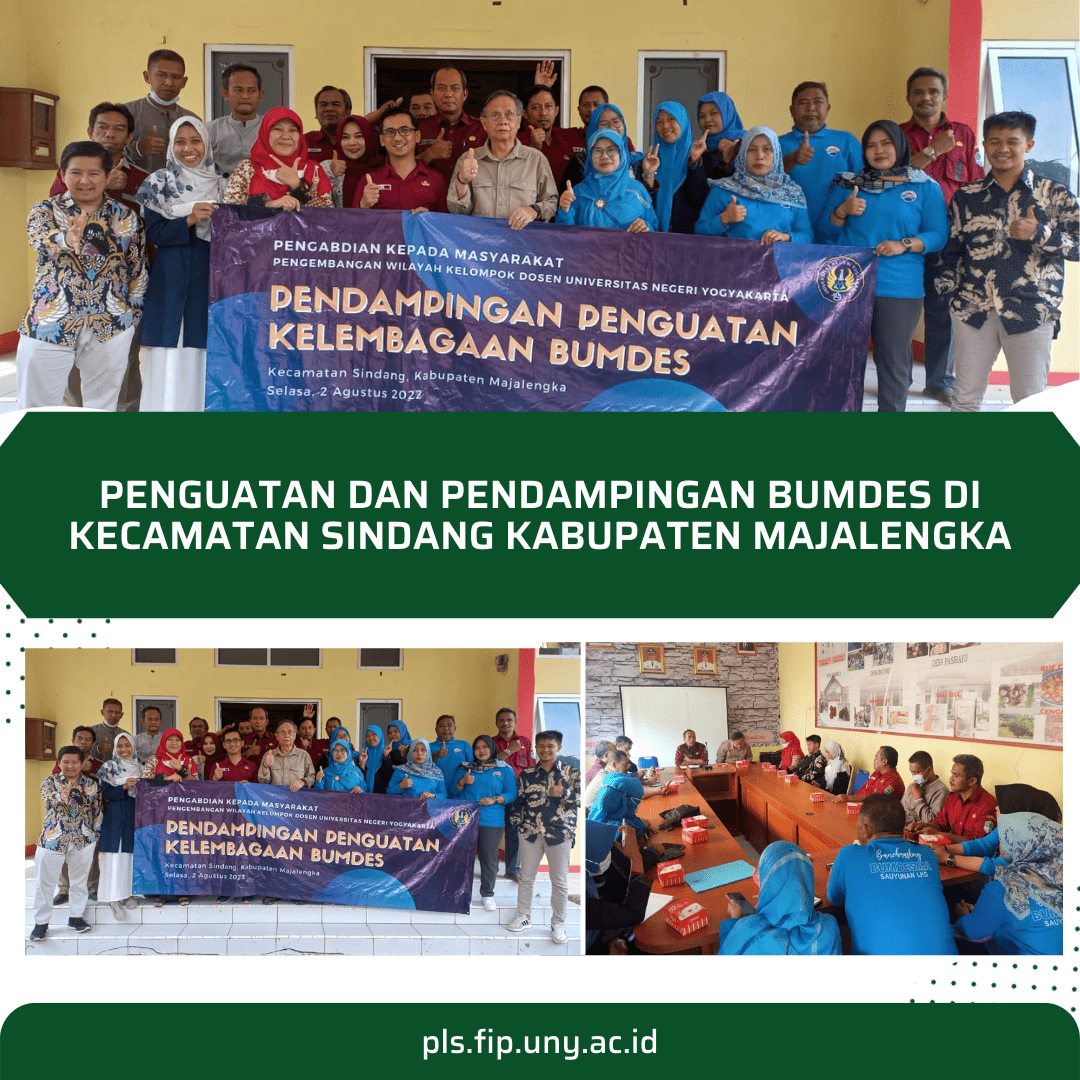 Kelompok Dosen Jurusan PLS FIP UNY yang terdiri dari Prof. Dr. Yoyon Suryono, MS., Dr. Puji Yanti Fauziah, M.Pd., dan Akhmad Rofiq, M.Pd. melaksanakan kegiatan koordinasi dan pelatihan program pengabdian masyarakat di kecamatan Sindang, Kabupaten Majalengka pada hari Senin (1/8/2022).